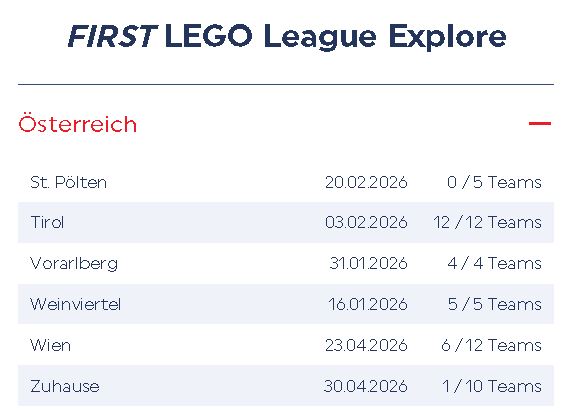 Die Termine 25/26 für die österreichischen Explore Ausstellungen (6-10) Regionalwettbewerbe (Challenge 9-16) und dem Österreichfinale: